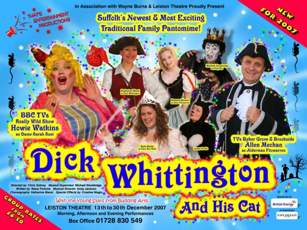 It's Pantomime Time...After a couple of years off from pantomime I have been made an offer I couldn't refuse. I will be at the Leiston Film Theatre playing Dame Sarah Gonzales De-Marco Le-Fevre Milosovic Goldstein Suet; chief cook and bottlewasher to Alderman Fitzwarren of London. Leiston is a lovely place, on the Aldeburgh coast (a little north of Ipswich). Looking forward to seeing you there. More details and Directions on the Leiston Film Theatre's Website. |