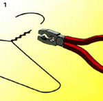 | Cut the hook off the coat hanger and bend the hoop into a diamond shape. | Take your square of netting, fold